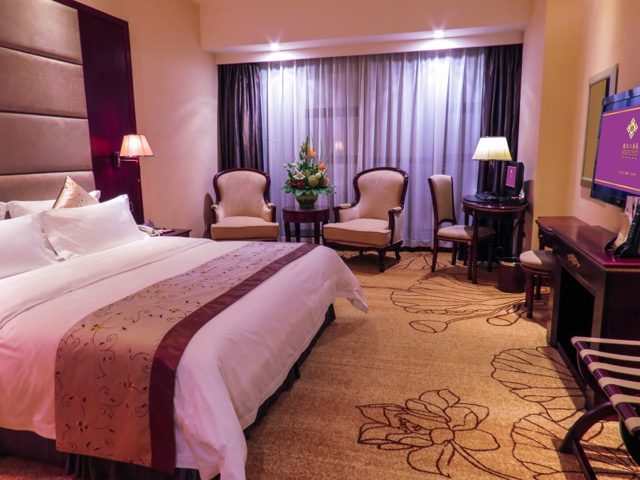 面積:28-36m2 床型: 大床 1.8米 窗戶:有窗 特色:便利設施: 多種規格電源插座、空調、鬧鐘、針線包、220V電壓插座、遮光窗簾、手動窗簾、床具:鴨絨被、沙發、開夜床、電子秤、房間內高速上網、客房WIFI覆蓋免費 浴室: 拖鞋、24小時熱水、免費洗漱用品(6樣以上)、浴衣、獨立淋浴間、吹風機