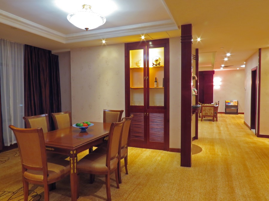 面積:104-136m2 床型: 大床 1.8米 窗戶:有窗 特色:便利設施: 多種規(guī)格電源插座、空調(diào)、鬧鐘、針線包、220V電壓插座、遮光窗簾、手動窗簾、床具:鴨絨被、沙發(fā)、開夜床、電子秤、房間內(nèi)高速上網(wǎng)、客房WIFI覆蓋免費 浴室: 拖鞋、24小時熱水、免費洗漱用品(6樣以上)、浴衣、獨立淋浴間、吹風機