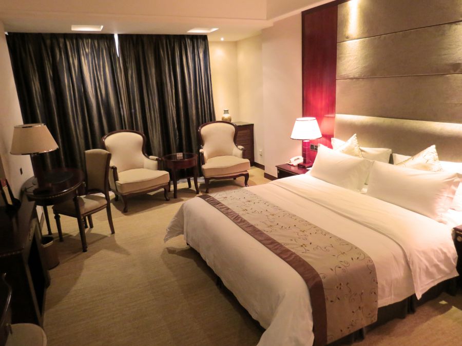 面積:25m2 床型: 大床 1.2米 窗戶:有窗 特色:便利設施: 多種規格電源插座、房內保險箱、空調、鬧鐘、針線包、220V電壓插座、遮光窗簾、手動窗簾、床具:鴨絨被、沙發、開夜床、電子秤、房間內高速上網、客房WIFI覆蓋免費 浴室: 拖鞋、24小時熱水、免費洗漱用品(6樣以上)、浴衣、獨立淋浴間、吹風機